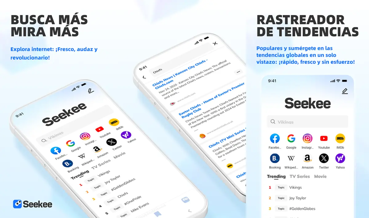 Seekee se define a sí mismo como un «navegador de vídeo» cuyas funciones principales son el seguimiento de tendencias en tiempo real y la búsqueda de películas y series de forma sencilla. En otras palabras, es un navegador web que te permite encontrar y ver los últimos estrenos en películas y series de cualquier plataforma. La app en sí no aloja ningún contenido, por lo que técnicamente no está infringiendo leyes de derechos de autor.