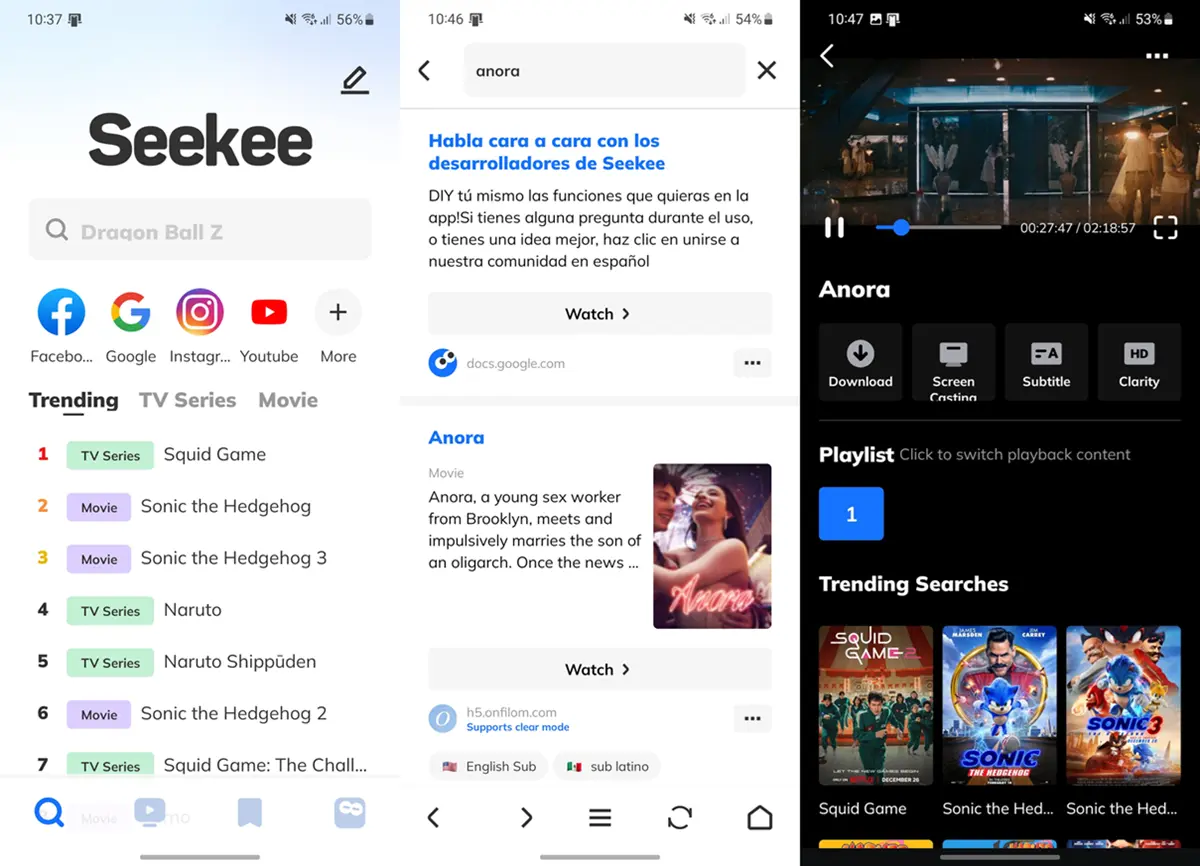 Seekee es una de esas apps que nos hace preguntarnos… ¿cómo ha hecho para colarse en la Play Store? Y es que, aunque a simple vista parece un navegador común y corriente, un par de minutos usándola te bastarán para darte cuenta de que es una app que aprovecha un vacío legal para brindarte acceso fácil y gratis a miles de películas y series de plataformas como Netflix, Prime Video, Disney+, etc.