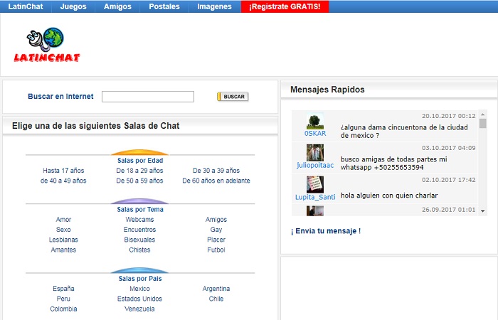 Al igual que las anteriores, Latin Chat contiene un panel donde podemos seleccionar el público con el que queremos interactuar. Ubicando varias opciones, nos brinda la posibilidad de chatear en diferentes salas y temáticas: de amor, sexo, bisexuales, etcétera. También es una muy buena opción si queremos encontrar amigos sin tener que pagar por ello.