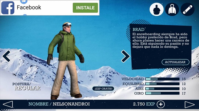 A tu disposición tienes 15 tipos de jugadores de snowboard, los mismos podrás personalizarlos con una gran cantidad de cosas. Igualmente, aquí tienes varios modos de juego: freestyle, halfpipe, big air y hasta multijugador.