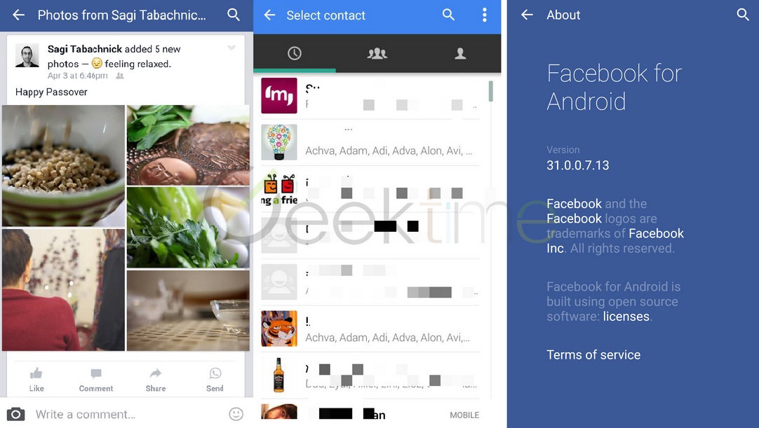 Esto es algo que podría cambiar muy pronto, ya que han visto la luz unas filtraciones sobre la próxima actualización de Facebook para Android. Esta próxima versión se correspondería con la 31.0.0.7.13, y hemos podido ver varias capturas de pantalla. Lo que vienen a enseñar etas capturas, es que cambian los botones que vemos hasta ahora bajo las publicaciones de nuestros amigos o páginas. Si antes veíamos los botones de «Me gusta» «Comentar» y «Compartir», en la próxima versión además de estos tres tendremos otro a mayores llamado «Enviar» y con el símbolo de WhatsApp.
