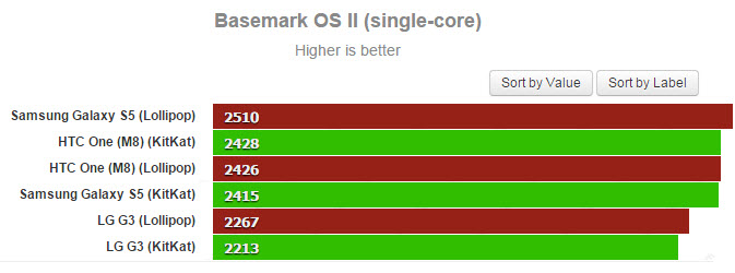 Los resultados hablan por si solos. En la mayoría de pruebas ganan los terminales equipados con Android KitKat, sin embargo en algunas otras, son los dispositivos equipados con Lollipop los que más fluidez registran, aunque comparando entre todos los test, el ganador es KitKat, sin embargo, la diferencia no es demasiado alta, por lo tanto no es algo que se note en el uso diario del teléfono.