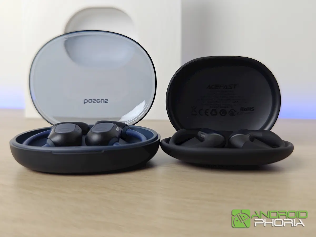 Tanto en precios como en características y enfoque, los ACEFIT Air son muy parecidos a los Eli Sport 1 de Baseus que probamos a mediados del año pasado. Como puedes ver en las imágenes, los de ACEFAST son más compactos y tienen un menor peso total (54,8 g vs. 84 g) e individual (7,5 g vs. 9,9 g). Además, llevan un driver más grande (20 mm vs. 16,2 mm) y, en general, diría que suenan un poco mejor.