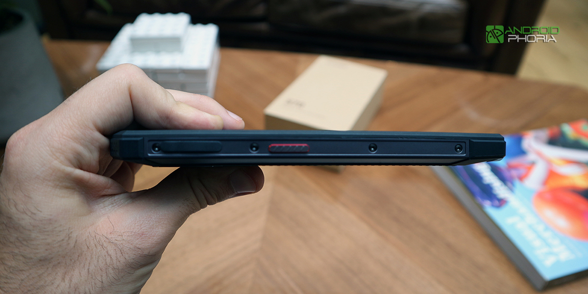El diseño de este teléfono está pensando para evitar golpes y todo tipo de daños, lo vemos en su marco metálico que ofrece una alta resistencia. Además de eso tiene las esquinas protegidas para completar la protección. Se nota que estamos ante un smartphone todoterreno, muy resistente, lo cual nos penaliza en las dimensiones y en peso, quizás un pelín excesivo.