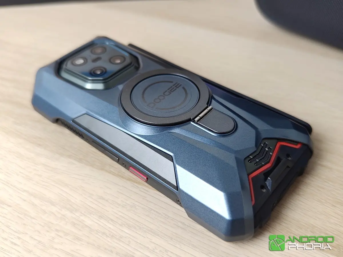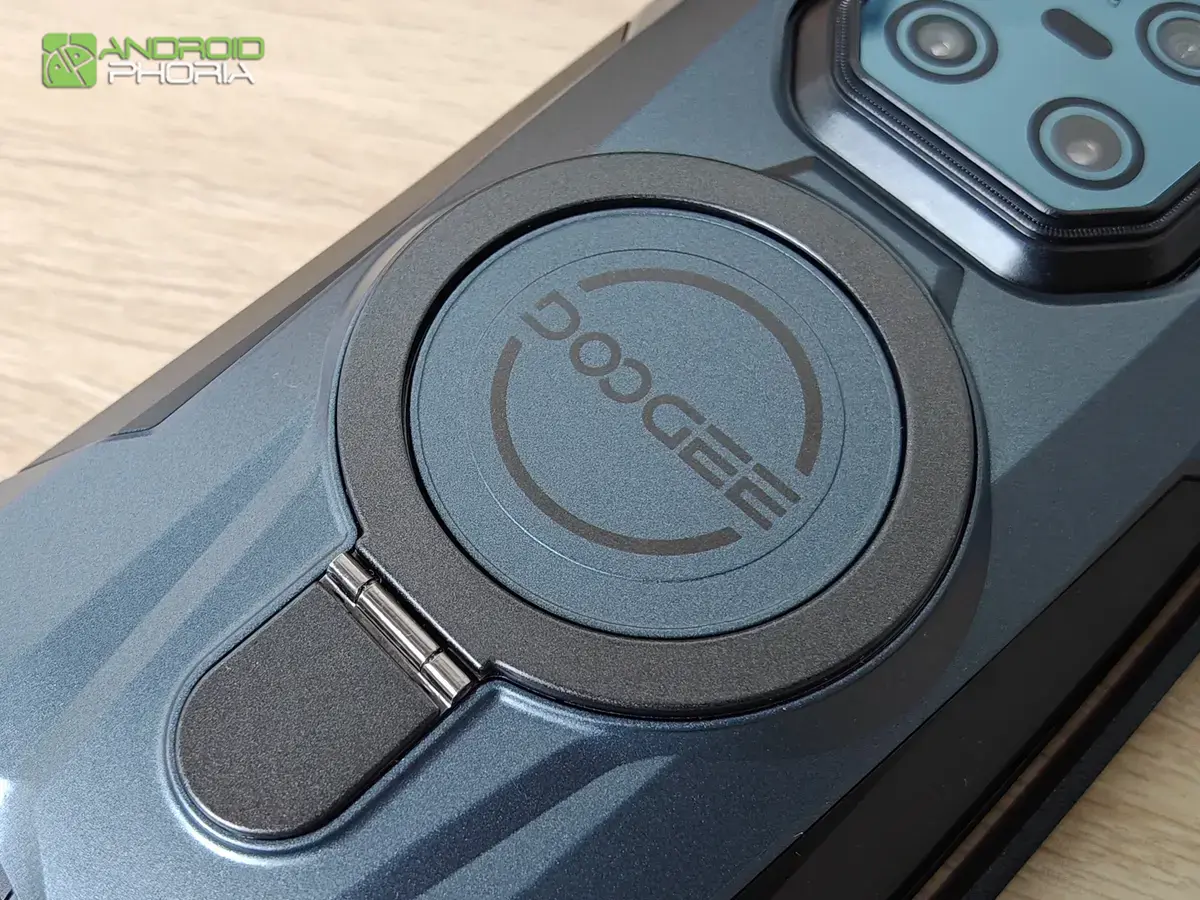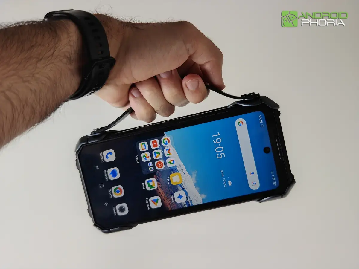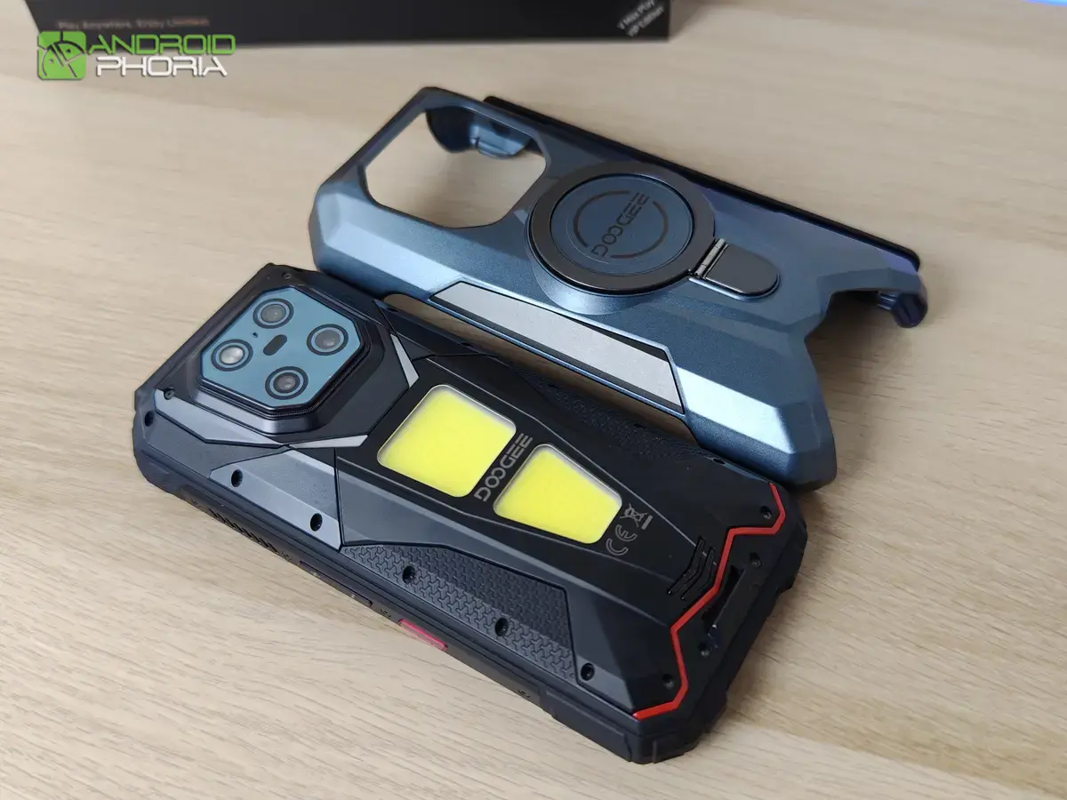 Y es que esta funda incorpora un anillo de soporte magnético compatible con los accesorios especiales de la «Edición VIP» que, por suerte, fue la que pude probar. También cuenta con una correa de sujeción que es muy conveniente teniendo en cuenta sus proporciones. Aunque me gusta la solidez de esta funda, tiene un punto negativo: al colocarla, se ocluye la linterna de camping, inutilizando una de las características más útiles del móvil.