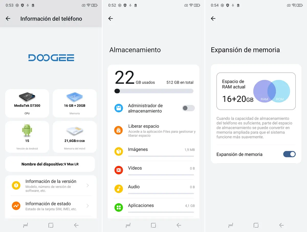 En cuanto a su motor interno, tanto el DOOGEE V MAX Play como el LR están impulsados por el MediaTek Dimensity 7300 5G, un procesador de ocho núcleos fabricado con tecnología de 4 nm. Viene acompañado de 16 GB de RAM base que se pueden extender hasta 36 GB usando parte de la memoria de su enorme almacenamiento de 512 GB que asegura espacio de sobra para guardar películas y todo el contenido de tus aventuras.