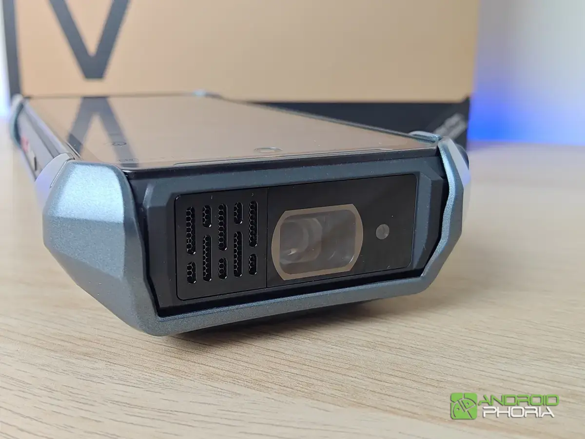 Esta es, sin duda, la sección que más ganas tengo de comentar, porque el proyector es la verdadera joya de la corona de este móvil. Tiene un módulo de proyección LED con una resolución nativa de 480p, brillo de 100 lúmenes y tasa de refresco de 60 Hz. Sobre el papel, estas especificaciones podrían sonar modestas, especialmente la resolución. Sin embargo, en la práctica, la experiencia es sorprendente.