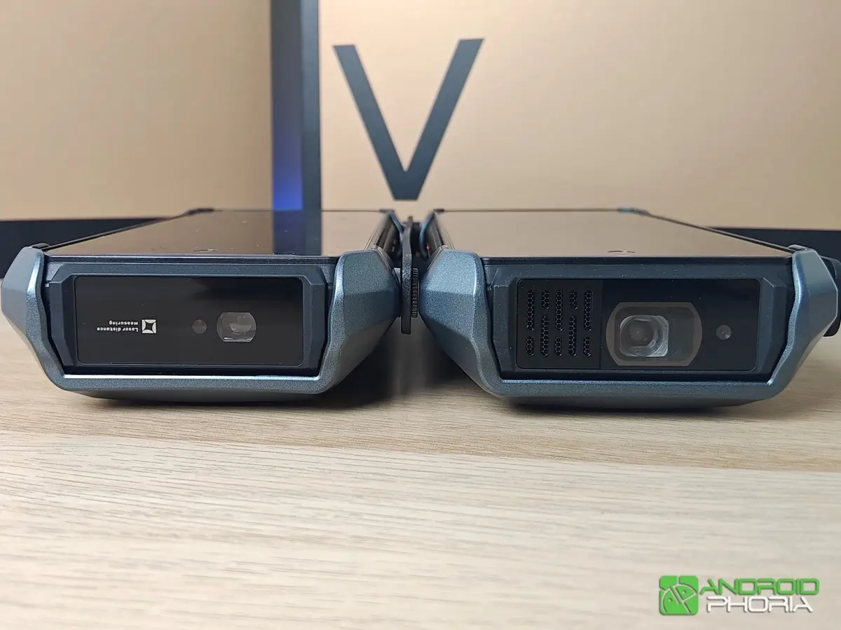 El DOOGEE V MAX LR tiene exactamente las mismas especificaciones, cambiando el proyector LED por un telémetro (medidor láser integrado) con rango de medición de 0.08 a 40 metros