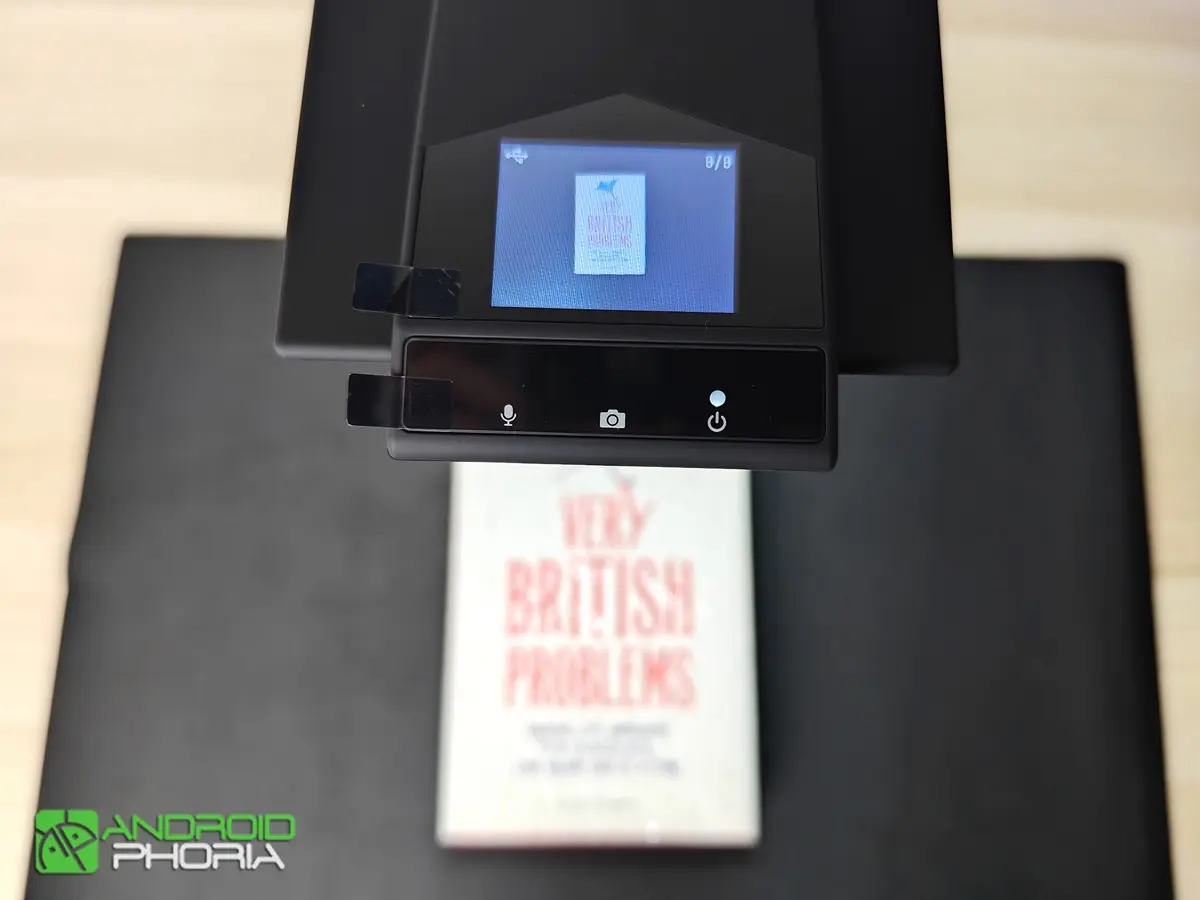 Además, incluye dos botones que se conectan por USB, aunque solo puedes usar uno a la vez: el botón manual y, para mi sorpresa, un pedal para escanear. La incorporación del pedal me pareció brillante; es utilísimo para esos momentos en los que tienes ambas manos ocupadas y necesitas mantener un libro grueso abierto.