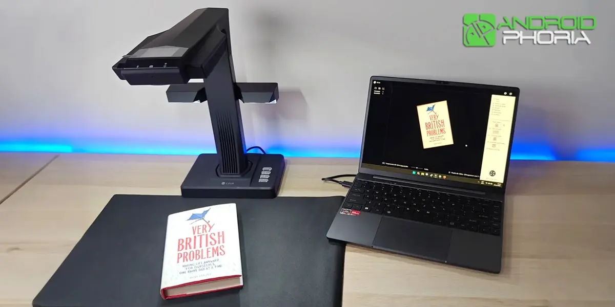 Cuando uno piensa en un escáner, se le viene a la cabeza esa tapa pesada, el cristal frío y la luz que pasa muy lentamente línea por línea. El CZUR ET MAX rompe completamente con esa imagen. De hecho, yo diría que técnicamente no es un escáner, sino más bien una cámara de alta resolución cenital con tecnología avanzada.