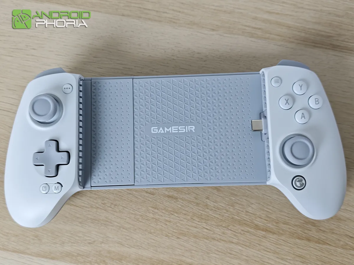 En el apartado de controles, encontramos una cruceta o D-Pad con botones mecánicos de respuesta precisa y tacto agradable; botones ABXY de membrana, más silenciosos y suaves, con una vida útil estimada de 2 millones de clics; gatillos analógicos con efecto Hall de GameSir súper precisos; y dos joysticks asimétricos también con efecto Hall, resistentes al drift y con una duración teórica de 5 millones de ciclos. Completan el conjunto los botones de pausa, menú, M, captura de pantalla y GameSir, además de los traseros L1, L2, R1, R2, M1 y M2 (estos dos últimos son programables).