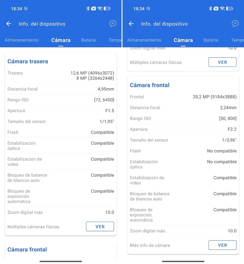 | Cámara trasera | Principal de 50 MP (Sony IMX882) con f/1.5 y OIS. Ultra gran angular de 8 MP con f/2.2. Flash Dual LED. |