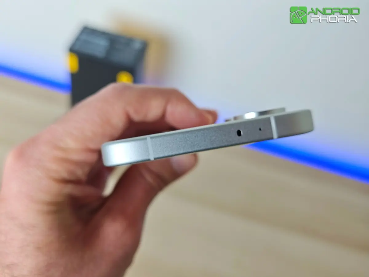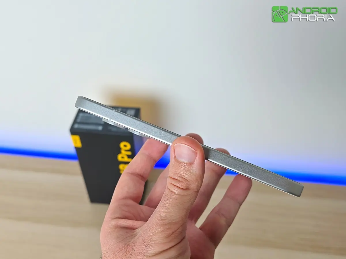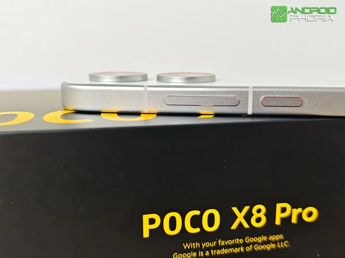 El POCO X8 Pro es de esos dispositivos que te enamoran desde que lo sacas de la caja. Nada más sostenerlo, te das cuenta de que tiene la calidad de construcción característica de los mejores móviles del mercado: un marco de metal con un acabado pulido en sus bordes que no solo le otorga rigidez, sino que se siente increíblemente prémium al tacto.