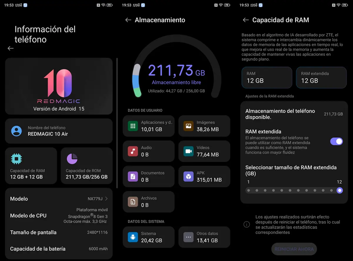 - REDMAGIC 10 Air de 12+256 GB (Twilight o Hailstone): 499 €