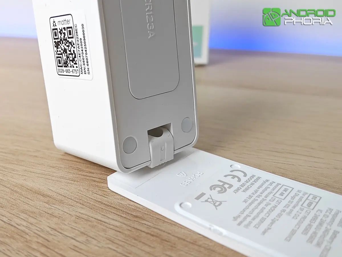 En la parte superior encontré un botón de emparejamiento que, en honor a la verdad, apenas tuve que usar gracias a la facilidad de Matter. Sin embargo, la verdadera versatilidad la encontré en su tapa trasera, donde residen las tres claves de la flexibilidad de su instalación.