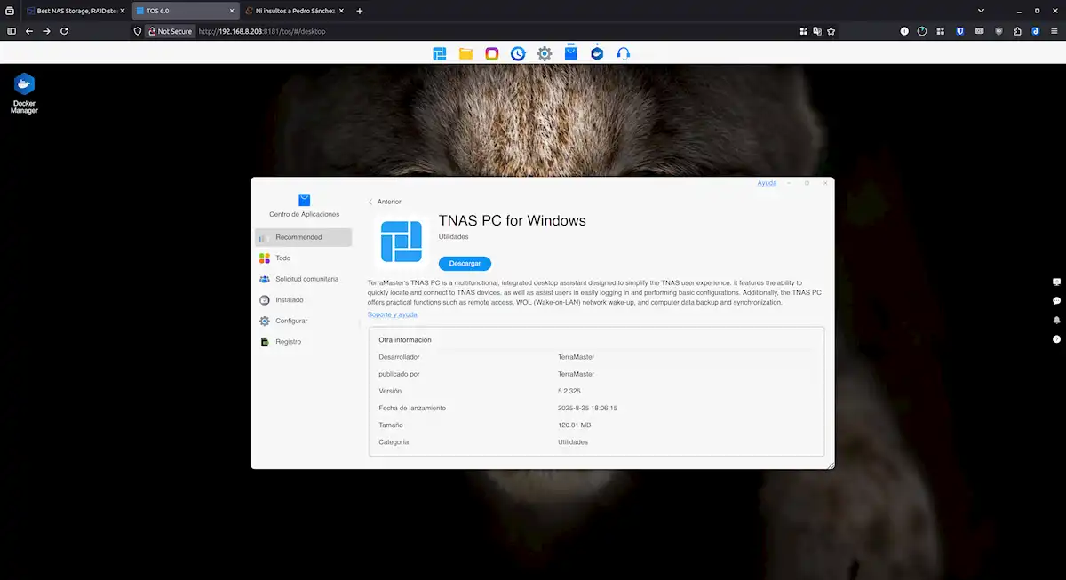 Cuando compré el TerraMaster F2-425, esperaba un software básico, pero TOS 6 me voló la cabeza. No es un simple sistema para guardar archivos; es el cerebro que hace que este NAS sea tan versátil. Aparte, al ser un sistema operativo basado en la web, puedes controlarlo casi todo desde el móvil con TNAS Mobile, su app oficial para Android e iOS que es una auténtica pasada.