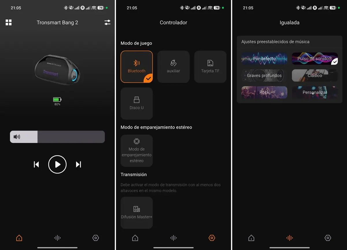 Además, si eres de los que les gusta toquetear el audio, desde la aplicación para móviles tienes un ecualizador de 5 bandas para personalizar la firma a tu gusto. También incluye modos predeterminados como grave profundo, rock o clásico, aunque mi recomendación personal es dejar activado el modo SoundPulse. Es el que mejor realza ese carácter fiestero y envolvente que hace que el altavoz brille con luz propia.