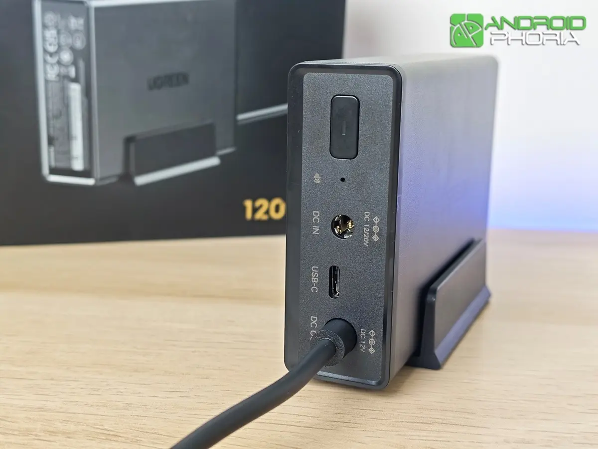 - Puerto USB-C: es el canal de comunicación. Aquí conectas el cable USB que va directo al NAS para que ambos dispositivos se «entiendan» y el NAS sepa cuánta batería queda.