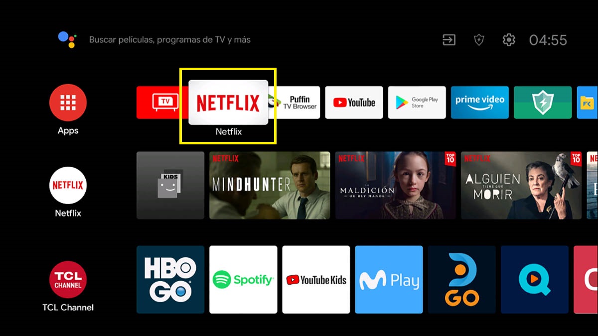 - Lo primero que tienes que hacer es ingresar en el menú de tu Android TV. Una vez dentro del menú, tendrás que abrir la app de Netflix.