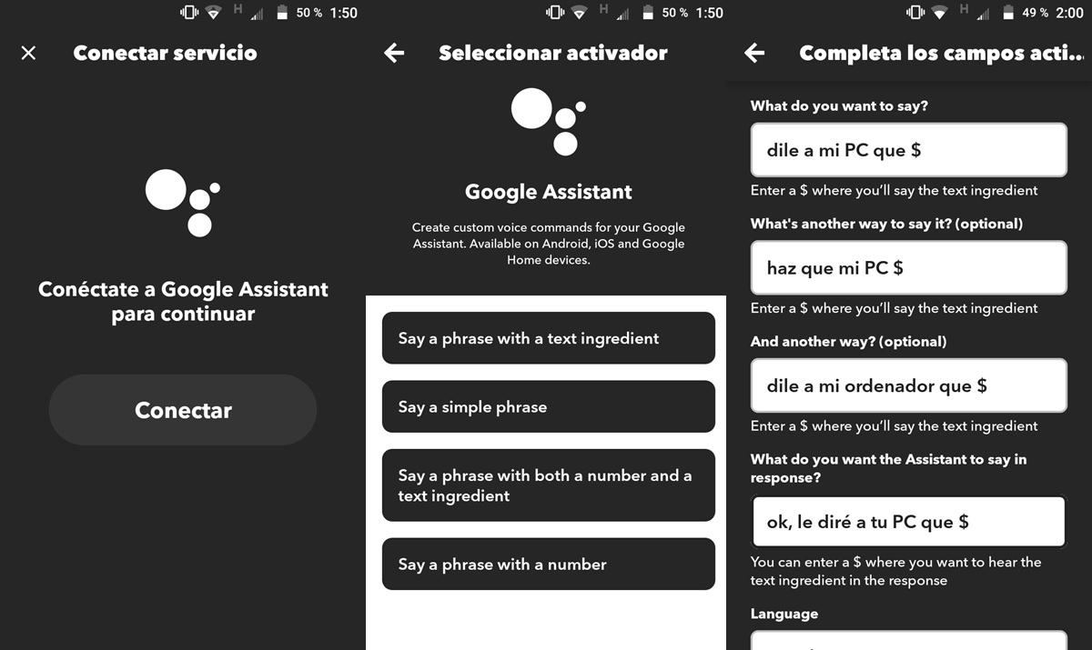 - Instala IFTTT en el teléfono donde tienes al Asistente de Google.