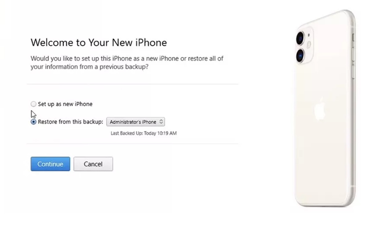 - Haz clic en el icono del dispositivo y iTunes te pedirá que selecciones una opción. Elige la que dice Restaurar desde esta copia de seguridad y pulsa en Continuar.