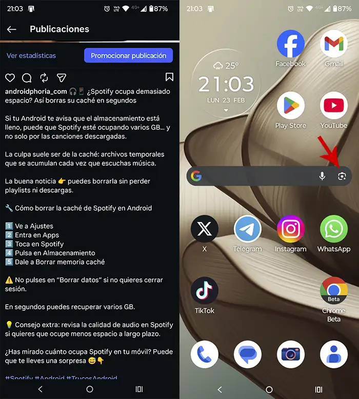 Este método funciona muy bien, aunque tiene una limitación: no sirve en apps que bloquean las capturas de pantalla.