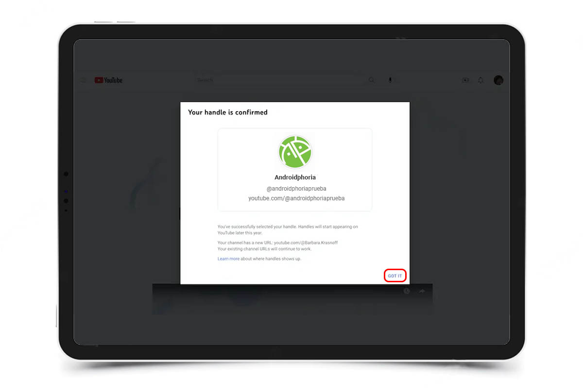Sencillamente, era una URL personalizada, más corta y fácil de recordar, que otros podían utilizar para acceder a tu canal rápidamente. Normalmente, el formato que se seguía era similar a alguno de estos dos ejemplos: youtube.com/c/androidphoria o youtube.com/user/androidphoria.