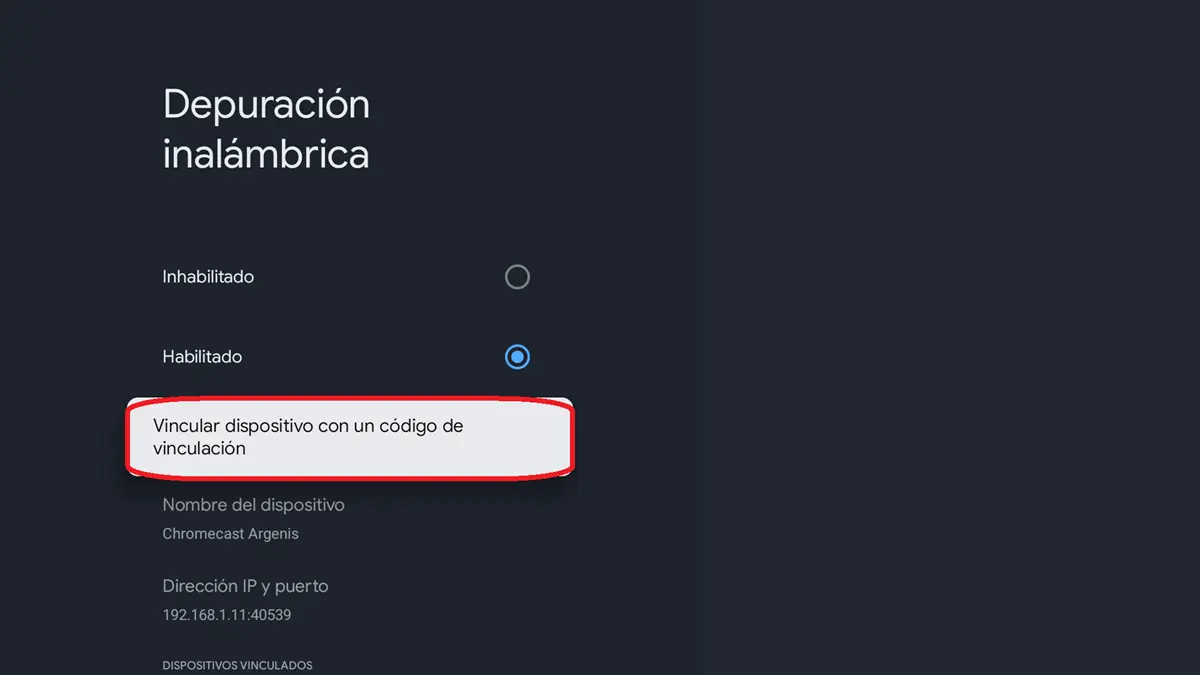 - Entra en Depuración inalámbrica y selecciona Habilitado.