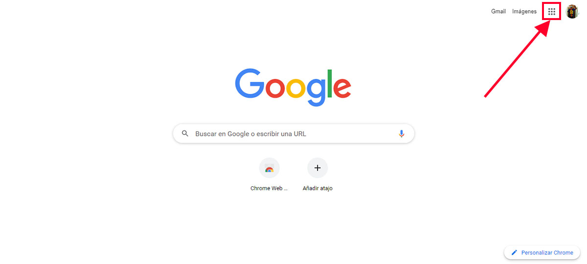- Haz clic en Aplicaciones de Google, en la esquina superior derecha, (es el botón con nueve puntos).