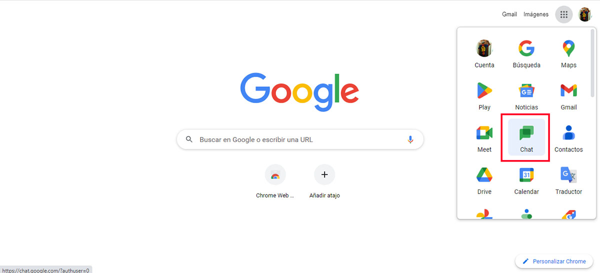 - Se abrirá la interfaz de Google Workspace y en ella oprime en + (el símbolo que se encuentra al lado de la pestaña de chatear).