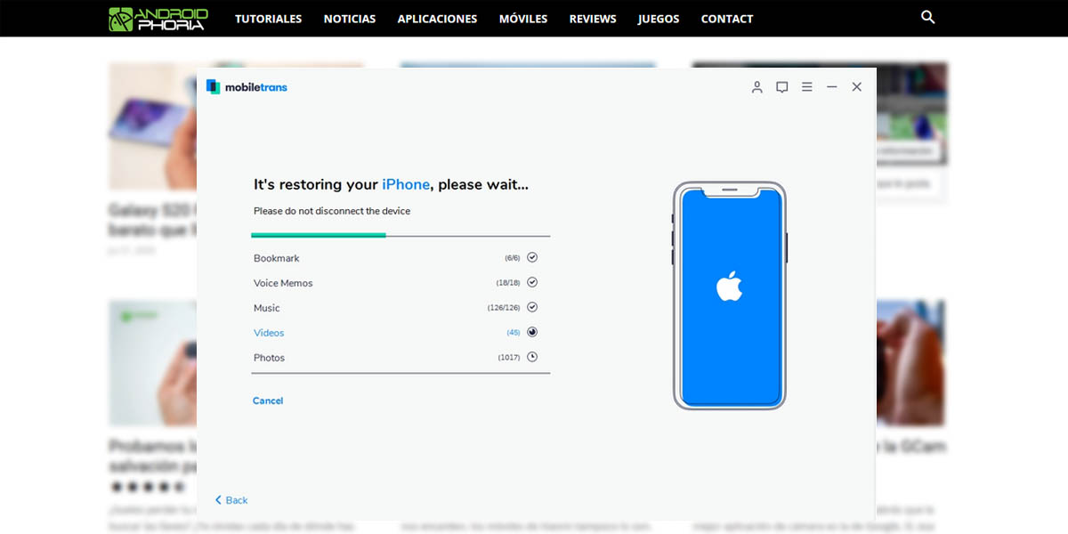 Si estuviste atento a cada paso, seguro notaste que con la opción “Phone Transfer” puedes hacer muchas otras cosas. Esta función no solo permite transferir tus contactos de Android a un iPhone, y viceversa, sino que también te deja trasladar: tus fotos, vídeos, música, eventos del calendario, marcadores del navegador, mensajes, el registro de llamadas, tus notas, recordatorios y mucho más. Además, todo lo hace rápidamente y sin ningún problema de compatibilidad entre móviles.