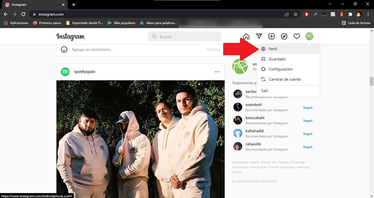 - Abre el sitio web de Instagram (tienes que tener la sesión de tu cuenta de Instagram abierta en el navegador de tu PC).