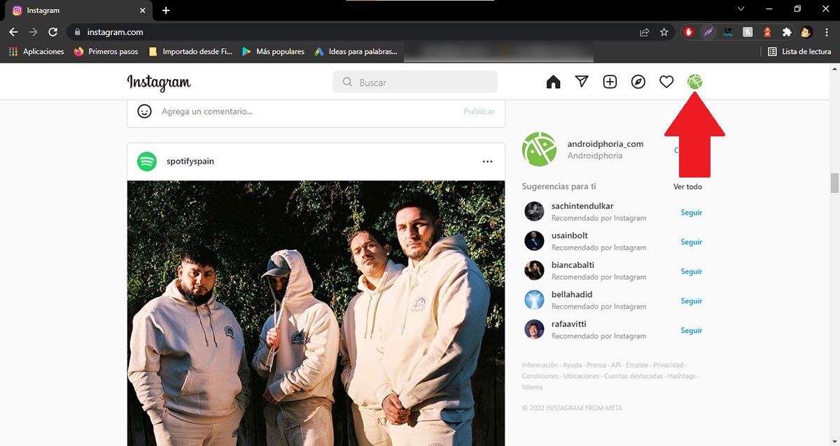 - Una vez que estés dentro de Instagram, tendrás que hacer clic sobre tu foto de perfil (arriba a la derecha del sitio web de Instagram).