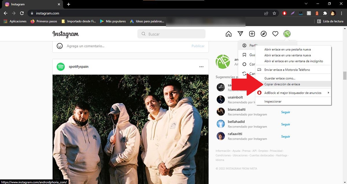 Crear el enlace de tu perfil de Instagram desde el ordenador