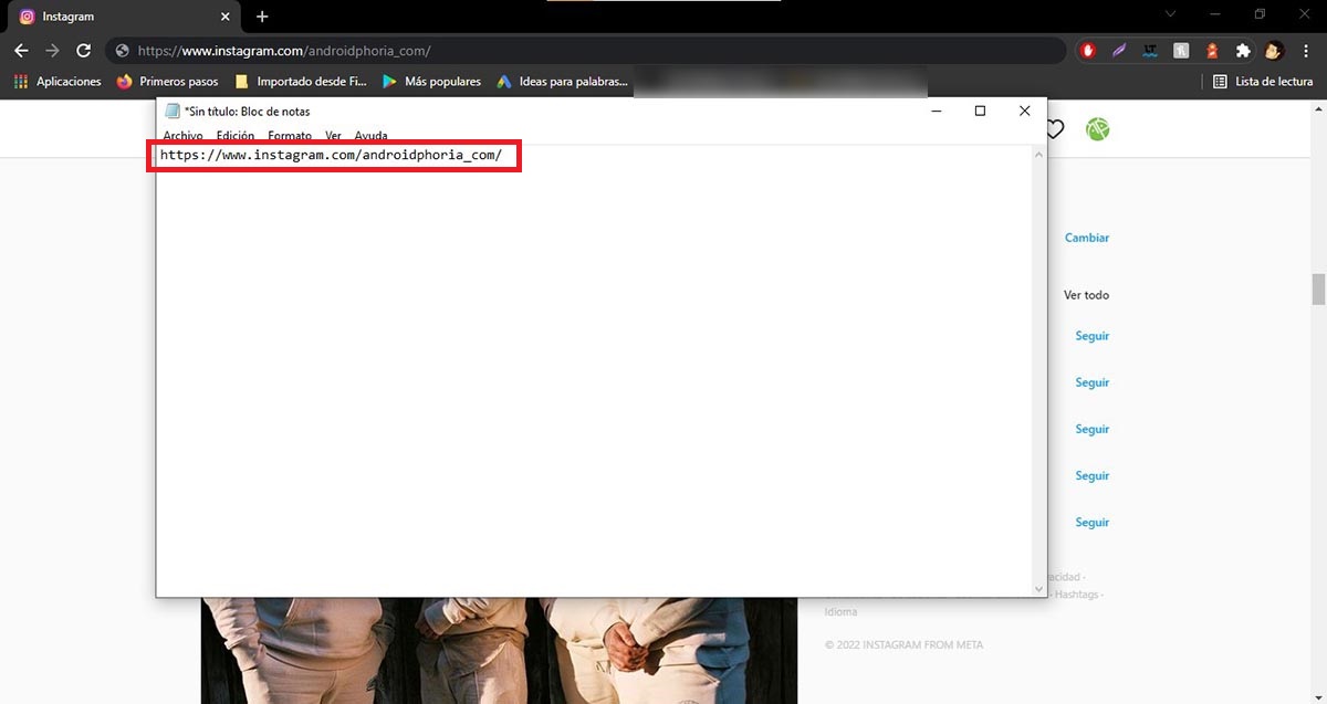 - Y, por último, tendrás que pegar esa dirección en algún lugar (te recomendamos pegarla en un bloc de notas).