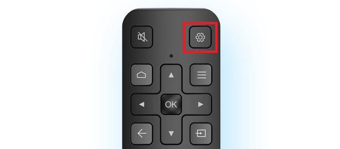 - Con la consola de videojuegos o PC conectada a tu televisor TCL con Android TV, deberás pinchar sobre la rueda dentada que posee el control remoto.