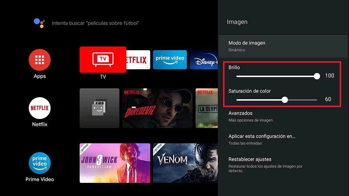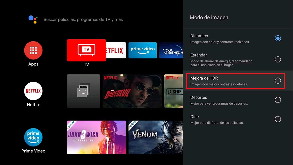 Si eres de ver muchas películas y series en tus ratos libres, no solo te recomendamos descargar Netflix, HBO, Amazon Prime y demás apps en Android TV, también te aconsejamos copiar esta configuración para disfrutar de todo ese contenido con la mayor calidad de imagen posible.