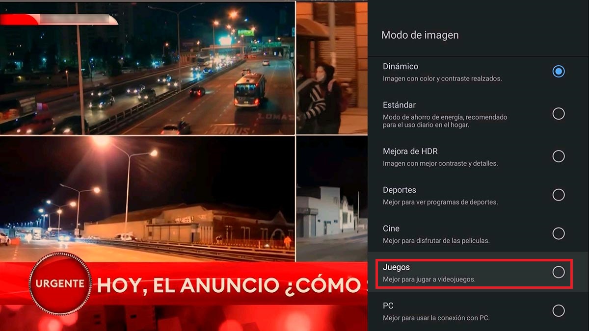 Si bien este modo de imagen puede utilizarse para casi cualquier contenido (menos para jugar), nosotros recomendamos activarlo únicamente para ver televisión por cable y TDT, ¿por qué? Por el simple motivo que dicha configuración logra adaptarse a eventos deportivos, shows en vivo y mucho más.