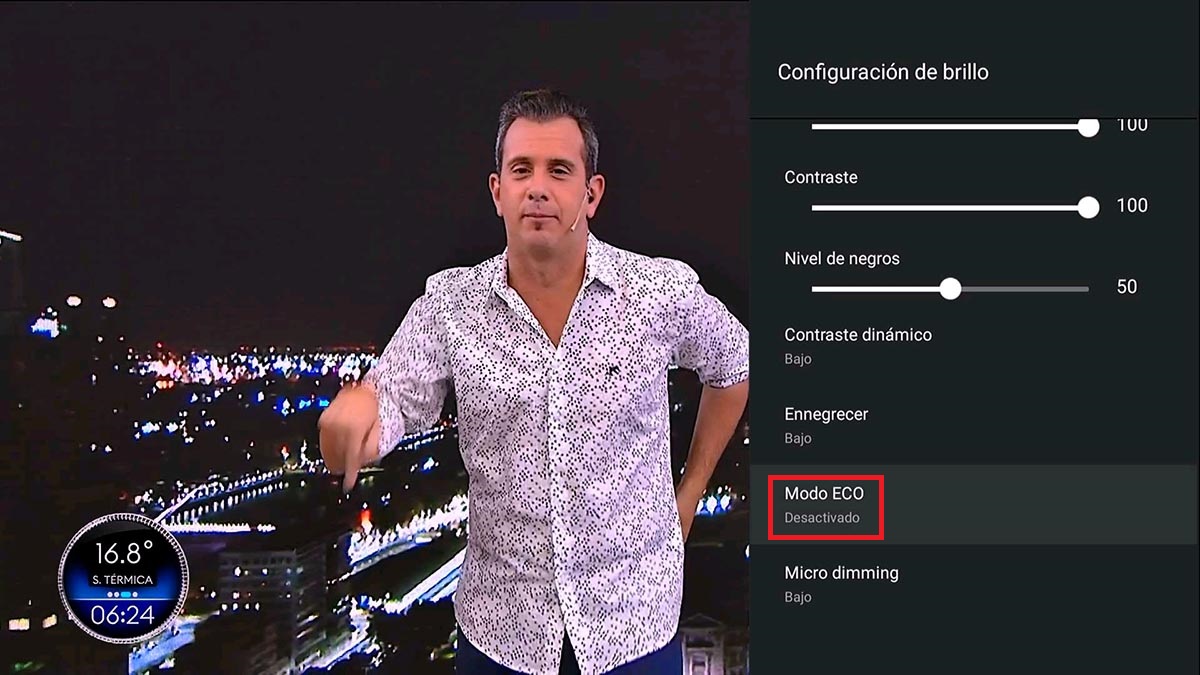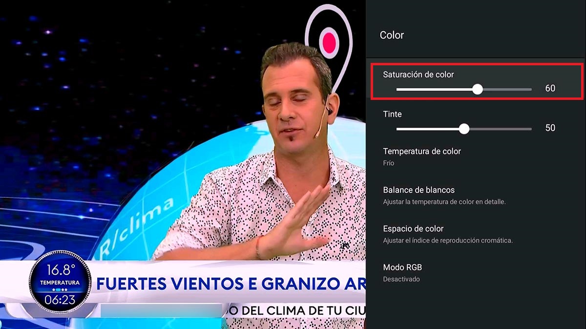 - Una vez seleccionada esa opción, pon el brillo al 100% y la saturación de color al 60%.