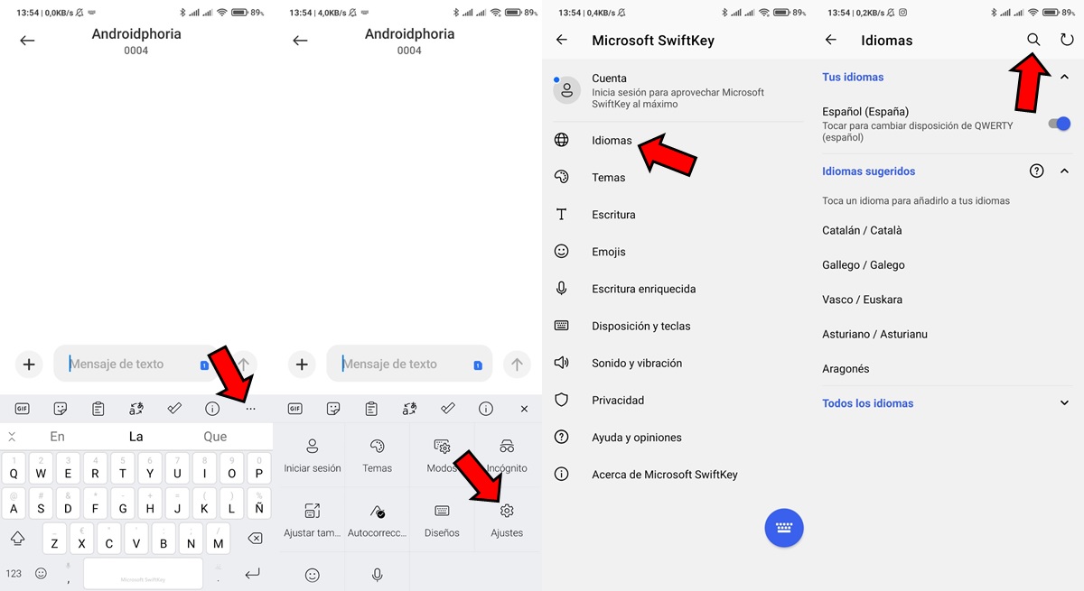 Si no utilizas el teclado de Google en tu móvil, sino el de Microsoft, no te preocupes, en este también es fácil poner el teclado griego. Para añadir el idioma griego en SwiftKey debes hacer lo siguiente: