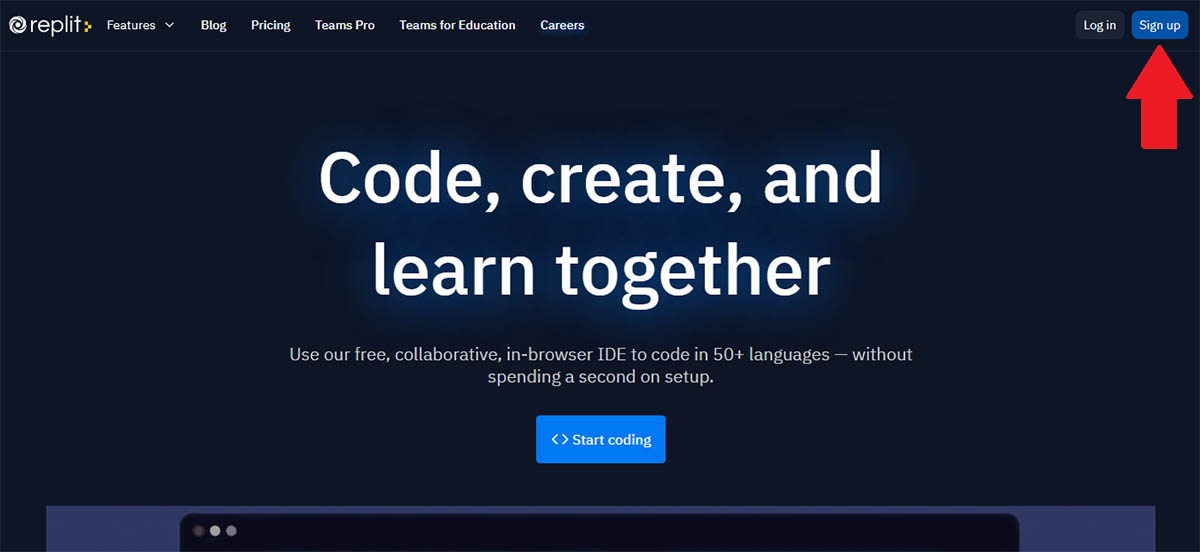 - Ingresa en el sitio web de Replit y crea una cuenta.